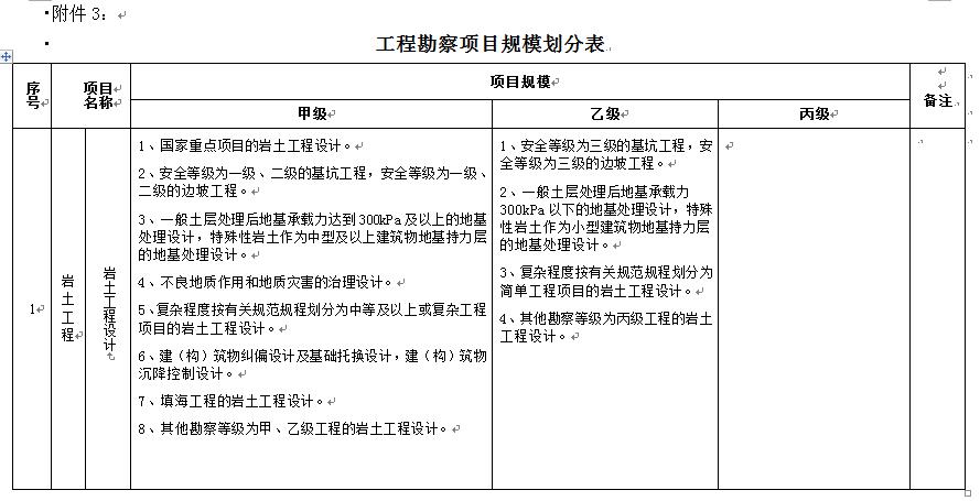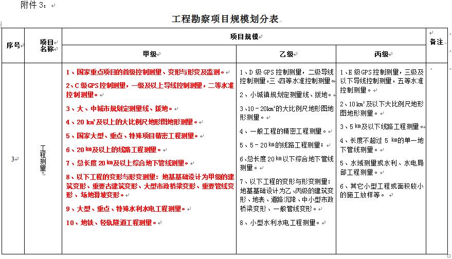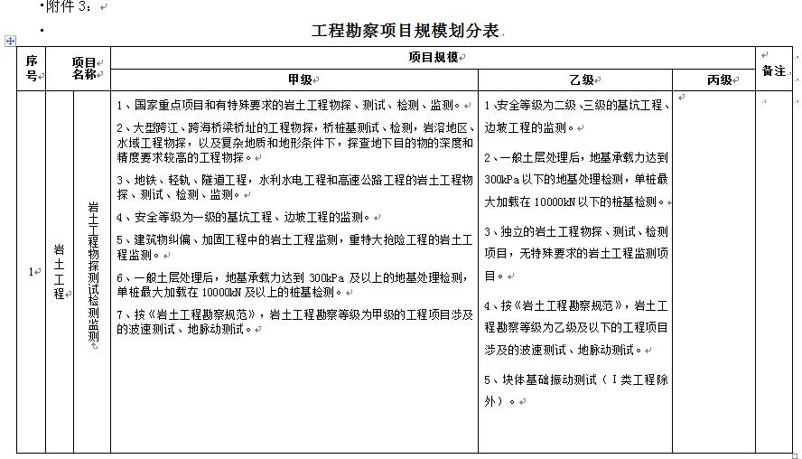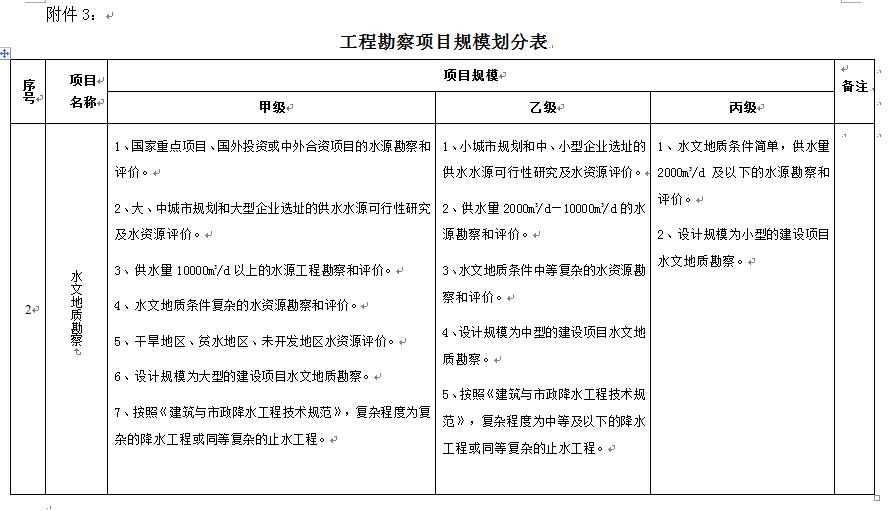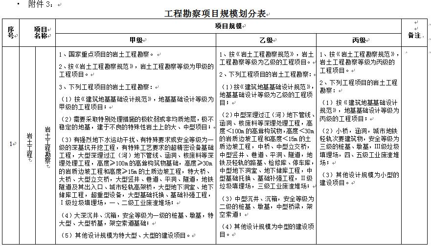 工程勘察项目规模划分表--综合类甲级资质